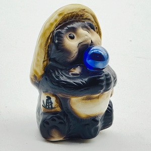 信楽焼・3号ミニ風水狸(青)は、日本の伝統工芸の魅力が詰まった愛らしい陶器製の置物です。